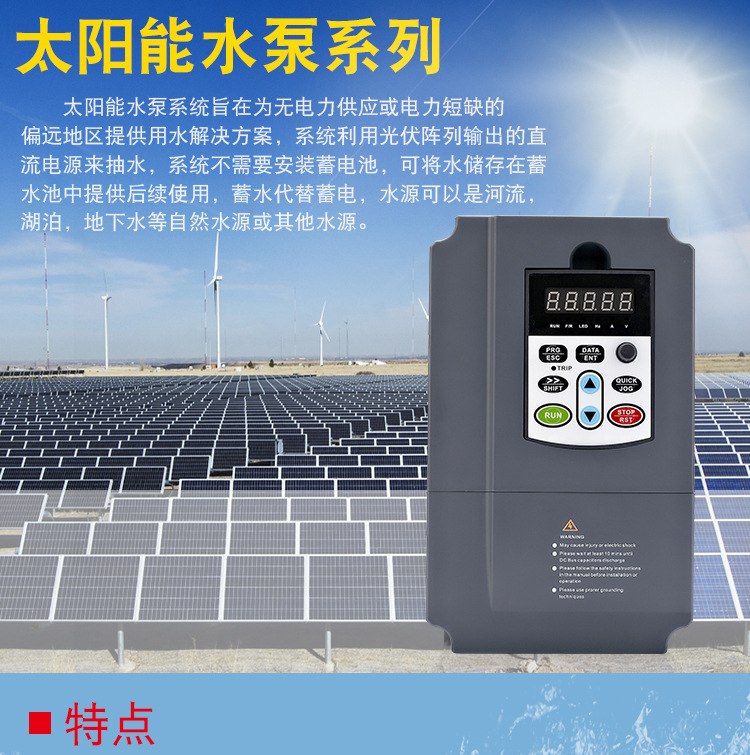 SK650系列變頻器是三科推出的針對光伏發(fā)電,驅(qū)動三相交流水泵的變頻器,它采用大功率點追蹤及久經(jīng)考驗的電機驅(qū)動技術(shù)以催化增大太陽能模塊的輸出功率,它將直流電直接逆變成三相交流電,可驅(qū)動各類交流水泵。同時它支持直流和交流輸入,當(dāng)沒有太陽能時,該變頻器手動切換到單項或三相交流電輸入,如市電發(fā)電機或電池。SK650光伏水泵變頻器提供全方位保護(hù),電機軟啟動及調(diào)速功能,即開即用,安裝方便。產(chǎn)品型號 | SKI650A075G-090G-4 | SKI650A090G-110G-4 | SKI650A110G-132G-4 |