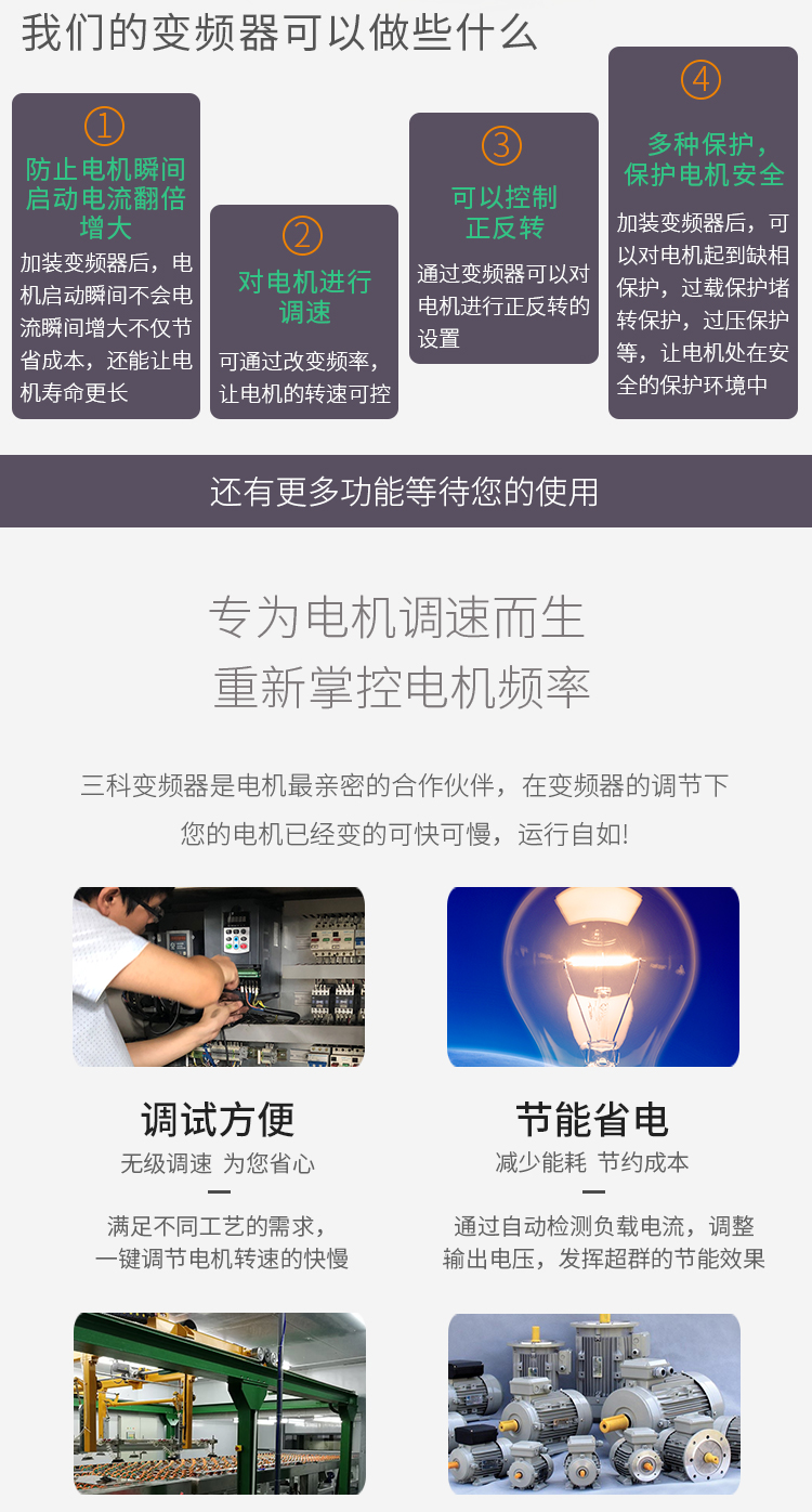 ⊙提供多種故障保護功能:過流、過壓、欠壓、過溫、缺相、過載等保護功能