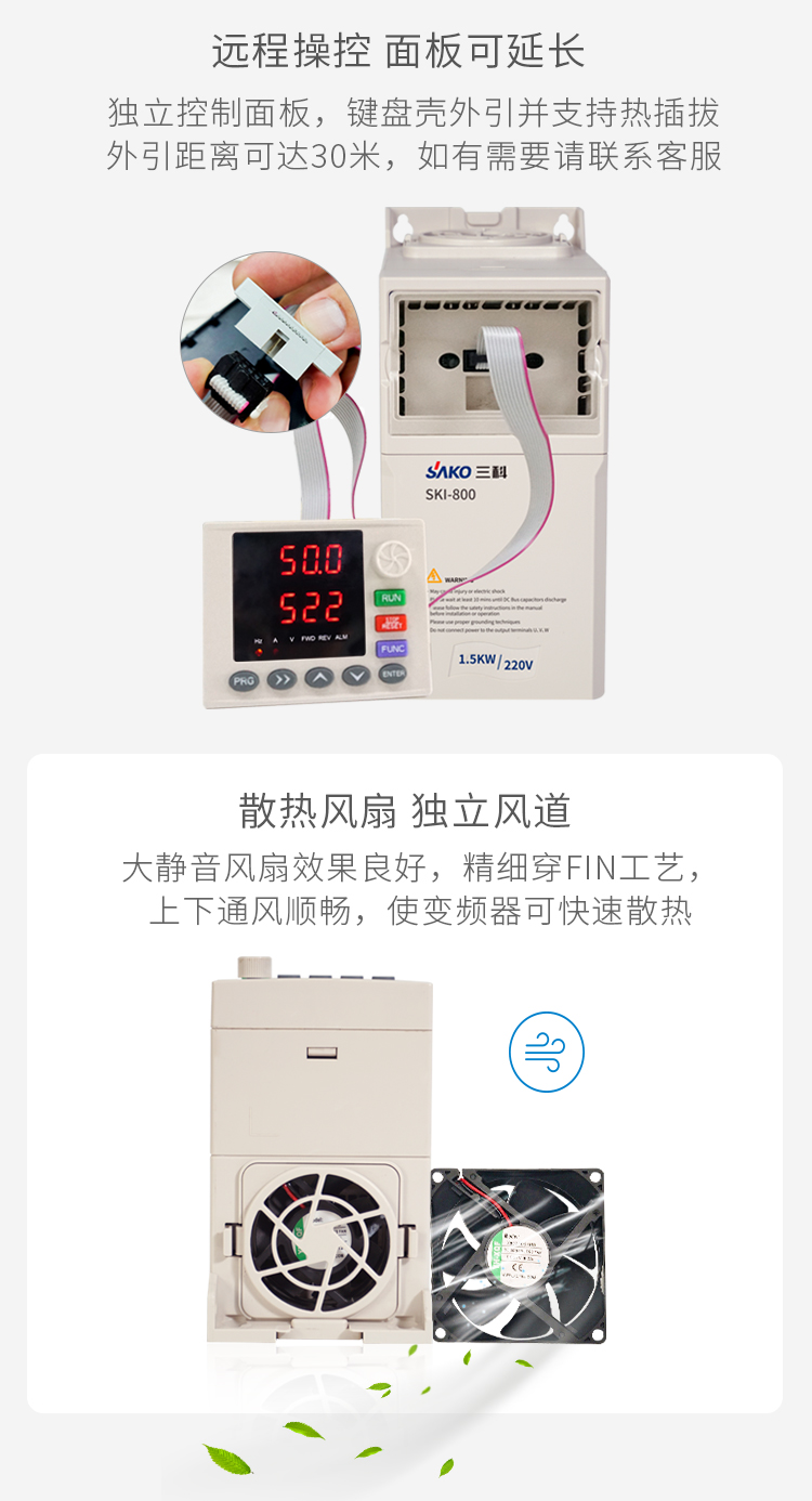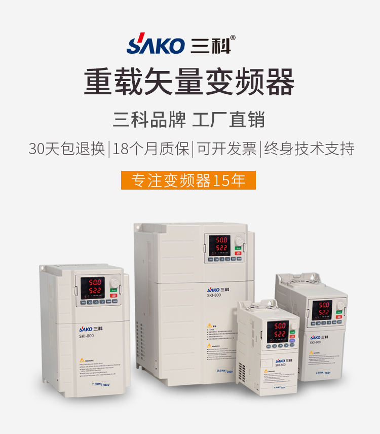 三科變頻器技術(shù)領(lǐng)先,環(huán)保節(jié)能,廣泛應(yīng)用在風(fēng)機(jī)、水泵、空壓機(jī)、注塑機(jī)、卷繞機(jī)、中央空調(diào),紡織機(jī)、化工、冶金、礦業(yè)、制藥、陶瓷、造紙、油田、塑料、印刷、熱電、煙草、食品等各類(lèi)工業(yè)機(jī)械設(shè)備中。