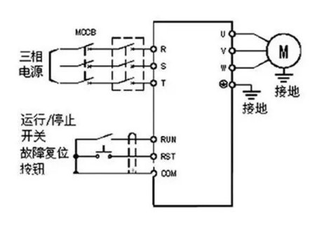 變頻器只要根據(jù)RUN接線端子給予上拉電阻,變頻器就可以啟動,開關(guān)斷裂時(shí),與RUN接線端子變成低頻相同,變頻器停止運(yùn)轉(zhuǎn)。