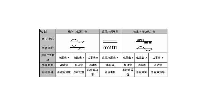 對于變頻器發(fā)生缺相故障時,可以從以下幾方面進行檢查:首先,通過電壓表或鉗型表來判斷變頻器輸入輸出是否正常。主回路電氣測量的說明如表1所示。