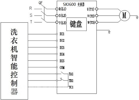 三科11KW通用性變頻器,運用DI3,DI4,COM收到點動交流接觸器上邊的延時繼電器,處理點動正、翻轉(zhuǎn);將DI1,DI2,COM連接此時間控制器,處理正反轉(zhuǎn)操縱。此設(shè)備必須點動正反轉(zhuǎn)及全自動正反轉(zhuǎn)運作操縱。點動加減速時間為0.6秒,頻率為50HZ。因當(dāng)場規(guī)定,加減速時間很短,當(dāng)正反轉(zhuǎn)轉(zhuǎn)換時意見反饋制動電阻的動能非常大,外接制動電阻為50歐1000W。因此 歐科變頻器在工業(yè)生產(chǎn)洗衣機(jī)上的運用,能使其做到全自動化技術(shù)的運作。