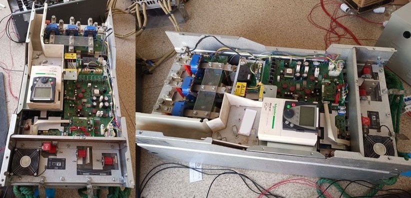 維護(hù)過程:首先完全拆卸VFD,拆卸散熱通道散熱器,用氣壓氣體清洗散熱器,清潔VFD內(nèi)部的所有部件和板。安裝igbt模塊。安裝igbt模塊時(shí),根據(jù)模塊要求依次安裝,扭矩適中。修復(fù)觸發(fā)電路,然后依次安裝其他設(shè)備。安裝后,進(jìn)行靜態(tài)試驗(yàn)。靜態(tài)試驗(yàn)結(jié)果良好后,進(jìn)行通電試驗(yàn)和負(fù)載試驗(yàn)。通過負(fù)載試驗(yàn)并成功完成維護(hù)。