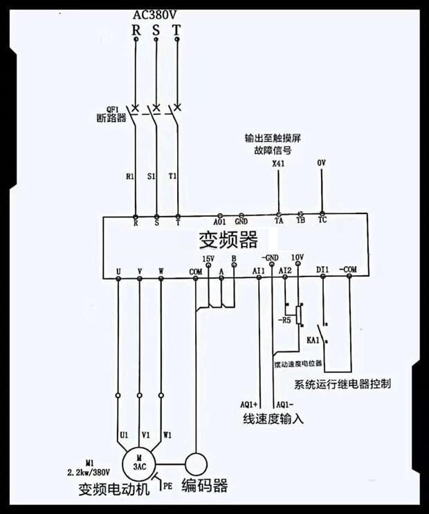 上圖高性能矢量型變頻器的在實(shí)際電路中的應(yīng)用電路圖。上圖中變頻器所驅(qū)動(dòng)的電動(dòng)機(jī),在電動(dòng)機(jī)軸上附加了一個(gè)編碼器來與電動(dòng)機(jī)同步旋轉(zhuǎn),編碼器此時(shí)可以根據(jù)電機(jī)的速度隨時(shí)隨地采集它的動(dòng)態(tài)速度的情況,及時(shí)反饋給變頻器的PG卡。