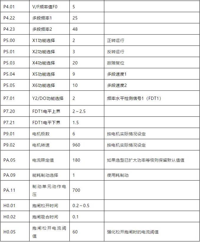 另外,上面的表格中所列舉的參數(shù)并不一定完全適合所有的現(xiàn)場(chǎng)調(diào)試,僅供調(diào)試參考。
