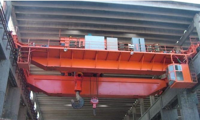 橋式起重機我們通常將其簡稱為行車或天車,這是一種將橋架在高架軌道上運行的橋架型起重機。其運行的原理是通過橋架沿鋪設(shè)在兩側(cè)高架上,然后以軌道縱向運行的方式工作,而當起重小車沿鋪設(shè)在橋架上的軌道橫向運行時,則構(gòu)成一個矩形的工作范圍,這樣就可以充分利用的橋架下方空間來吊運物料,可以有效避免地面設(shè)備造成阻礙和干擾。目前橋式起重機已廣泛的應(yīng)用在室內(nèi)外的倉庫、廠房、碼頭和露天貯料場等處中。橋式起重機通常是由起重小車、橋架運行機構(gòu)、橋架金屬結(jié)構(gòu)組成。其中起重小車部分又由起升機構(gòu)、小車運行機構(gòu)和小車架三部分組成。