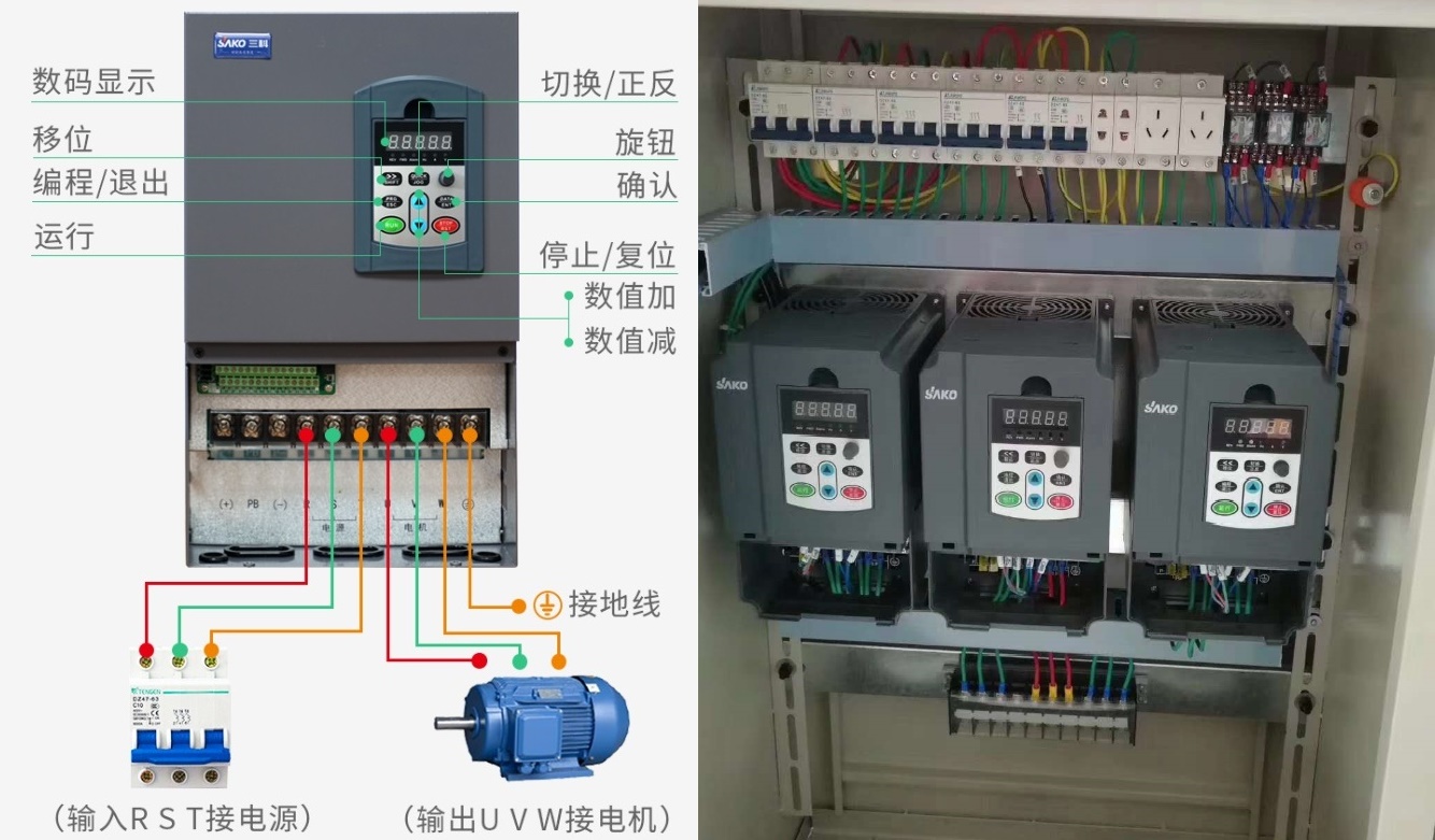3、通常起吊電機搭配變頻器時,變頻器功率較電機功率大一等級安裝。