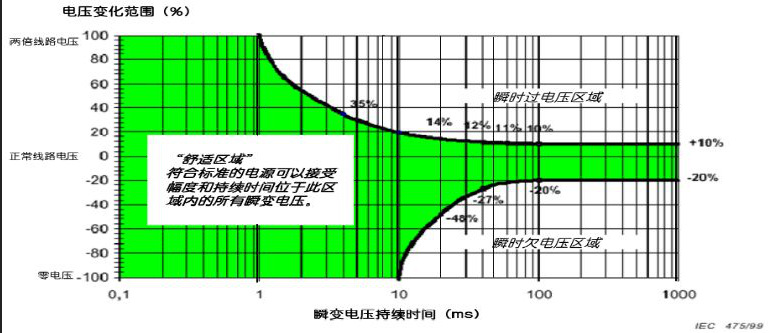 IT負(fù)荷其實對交流電的要求不高,允許電壓-20%,+10%,頻率40-70HZ,允許中斷時間10-20ms。逆變器優(yōu)先模式值得驕傲的1%輸出精度其實沒有一點價值。如圖示
