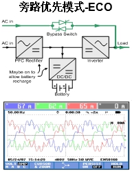 這兩個因素促使我們認(rèn)識到三相中大功率UPS其實也可以和小功率UPS一樣選擇旁路優(yōu)先運(yùn)行模式。事實上早在2010年,各大變頻器廠家及電源廠家三相UPS就允許用戶選擇工作在旁路優(yōu)先模式,即ECO模式(經(jīng)濟(jì)模式)。