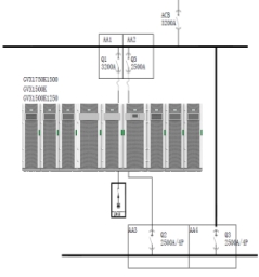 如圖示并機(jī)物理結(jié)構(gòu)2,為6臺250KW的功率柜+1500KW靜態(tài)旁路+輸入輸出I/O柜通過外部主配電柜和主電纜進(jìn)行并聯(lián),總共需要4個配電柜和少量電纜。每臺250KW UPS功率柜內(nèi)部集成了自動控制的接觸器和熔斷器,內(nèi)部還集成和預(yù)制了主輸入、旁路輸入、主輸出和電池母線的銅排背板與I/O柜連接,每臺UPS功率柜不再需要外配四把分?jǐn)嗦菲骱退慕M分電纜。