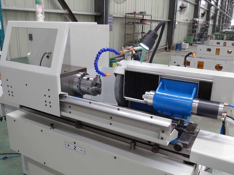 根據(jù)不同的軸桿直徑的大小,主砂輪電動(dòng)機(jī)的轉(zhuǎn)速等于砂輪輸出的轉(zhuǎn)速。磨削力的大小取決于電動(dòng)機(jī)的輸出轉(zhuǎn)矩。在驅(qū)動(dòng)工件旋轉(zhuǎn)的主軸電動(dòng)機(jī)的高速段,相對(duì)于砂輪輸出轉(zhuǎn)速不變,所加工的工件直徑小,磨削進(jìn)給少,加工大直徑,長(zhǎng)軸類工件時(shí),工件旋轉(zhuǎn)的電動(dòng)機(jī)在低速段,砂輪進(jìn)給量大,砂輪磨削力也在變大,電動(dòng)機(jī)很難再恒轉(zhuǎn)矩/恒速度下運(yùn)行,速度的變化就產(chǎn)生了如振刀紋/燒糊紋/加工精度等的變化。變頻調(diào)速電動(dòng)機(jī)的無(wú)級(jí)調(diào)速,恒轉(zhuǎn)矩輸出恰能彌補(bǔ)上述缺陷。