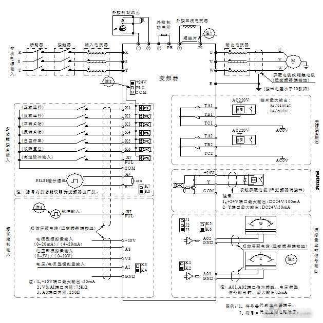 3、模擬量監(jiān)視輸出為頻率表、電流表、電壓表等指示表專(zhuān)用的輸出,不能用于反饋控制等控制類(lèi)操作。