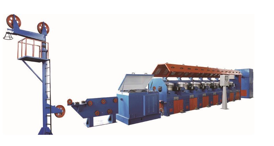 作為常見的金屬線材加工設(shè)備,直進(jìn)式拉絲機(jī)能夠?qū)Ω?、中、低碳鋼絲、不銹鋼絲、銅絲、合金銅絲、鋁合金絲等,進(jìn)行伸線加工,誤差0.1%精確計米。伸線機(jī)指的是一種可連續(xù)拉制,機(jī)械、電氣速度均衡匹配的設(shè)備,可對高、中、低碳鋼絲、不銹鋼絲、銅絲、合金銅絲、鋁合金絲等,進(jìn)行伸線加工,誤差 0.1%精確計米。設(shè)備主要用于將0.50-1.00mm銅線拉制成0.08-0.25mm銅線。如今已廣泛應(yīng)用在該設(shè)備中作為收放卷、牽引電機(jī)等驅(qū)動主要部件,本案采用杭州三科的SKI600系列直進(jìn)式拉絲機(jī)變頻器控制收放卷電機(jī)。