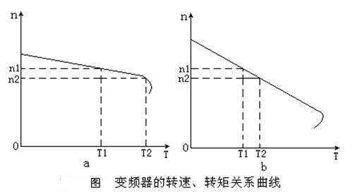 上圖中的圖(a)是電動機處于自然特性時的轉(zhuǎn)速、轉(zhuǎn)矩關(guān)系曲線,而圖(b)則是電動機具有下垂特性時的轉(zhuǎn)速、轉(zhuǎn)矩關(guān)系曲線。由圖可見: