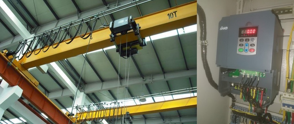 當我們需要的對兩臺或兩臺以上生產(chǎn)機械的電機進行同時拖動時,這里我們以橋式起重機為例,該設(shè)備是由安裝在兩側(cè)相同功率的電機進行同時拖動。這里的兩臺電機是通過同一臺起重機變頻器進行供能與控制的,協(xié)調(diào)兩臺電機進行升降調(diào)速的功能。這種情況不但要求兩臺電機的轉(zhuǎn)速同步,而且要求它們的負荷分配盡量均衡。而杭州三科生產(chǎn)SKI600系列產(chǎn)品所具備的下垂功能,可以很好地滿足起重設(shè)備這種應用需求。
