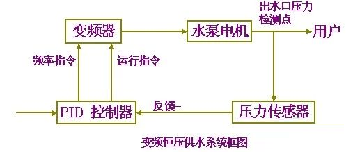 恒壓供水變頻柜是一種新型的節(jié)能供水設(shè)備。變頻恒壓供水設(shè)備系運(yùn)用了微電腦控制技術(shù),可將變頻調(diào)速器與電機(jī)水泵結(jié)合為機(jī)電一體化高效節(jié)能供水裝置。變頻恒壓供水設(shè)備以水泵出水端水壓(或用戶(hù)用水流量)為設(shè)定參數(shù),通過(guò)微機(jī)自動(dòng)控制變頻器(Variable-frequency Drive,VFD)的輸出頻率從而調(diào)節(jié)水泵電機(jī)的轉(zhuǎn)速,實(shí)現(xiàn)用戶(hù)管網(wǎng)水壓的閉環(huán)調(diào)節(jié),使供水系統(tǒng)自動(dòng)恒穩(wěn)于設(shè)定的壓力值:即用水量增加時(shí),頻率提高,水泵轉(zhuǎn)速加快;用水量減少時(shí),頻率降低,水泵轉(zhuǎn)速減慢。這樣就保證了整個(gè)用戶(hù)管網(wǎng)隨時(shí)都有充足的水壓(與用戶(hù)設(shè)定的壓力一致)和水量(隨用戶(hù)的用水情況變化而變化)。