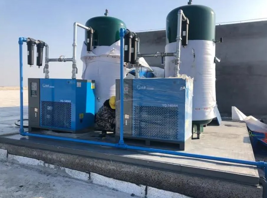 原空壓機(jī)的主電機(jī)為660V 250KW,運(yùn)轉(zhuǎn)方式為全壓直接啟動。其操作程序為:按下啟動按鈕,控制系統(tǒng)接通啟動線圈并翻開斷油閥,空壓機(jī)在空載形式下啟動。系統(tǒng)開端加載運(yùn)轉(zhuǎn),系統(tǒng)壓力開端上升。當(dāng)系統(tǒng)壓力上升到壓力開打開限值時,在起跳壓力下,控制器關(guān)閉進(jìn)氣閥,油氣別離器放氣,緊縮機(jī)空載運(yùn)轉(zhuǎn),直到系統(tǒng)壓力降到壓力開關(guān)下限值后,在回跳壓力下,控制器使進(jìn)氣閥翻開,油氣別離器放氣閥關(guān)閉,緊縮機(jī)滿載運(yùn)轉(zhuǎn)。