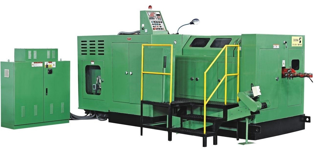 采用冷拉銅,鋁絲,鐵絲等自動(dòng)冷鐓,是生產(chǎn)抽心鋁鉚釘,半空心鐵鉚釘?shù)膶S迷O(shè)備。該機(jī)的全部結(jié)構(gòu)從校直,選料,切割二次成形至落料全部自動(dòng)進(jìn)行,具有成形標(biāo)準(zhǔn)穩(wěn)定,加工品種多等優(yōu)點(diǎn)。