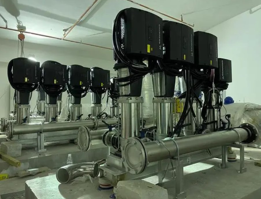 變頻恒壓供水系統(tǒng)以管網(wǎng)水壓或用戶用水流量為設(shè)定參數(shù),經(jīng)過微機控制變頻器的輸出頻率從而自動調(diào)理水泵電機的轉(zhuǎn)速,完成管網(wǎng)水壓的閉環(huán)調(diào)理,使供水系統(tǒng)自動恒穩(wěn)于設(shè)定的壓力值:即用水量增加時,頻率升高,水泵轉(zhuǎn)速加快,供水量相應(yīng)增大;用水量減少時,頻率降低,水泵轉(zhuǎn)速減慢,供水量亦相應(yīng)減小,這樣就保證了供水效率用戶對水壓和水量的請求,同時到達了進步供水質(zhì)量和供水效率的目的,“用幾水,供幾水”;采用該設(shè)備不需建造高位水箱,水塔,水質(zhì)無二次污染,是一種理想的現(xiàn)代化建筑供水設(shè)備。