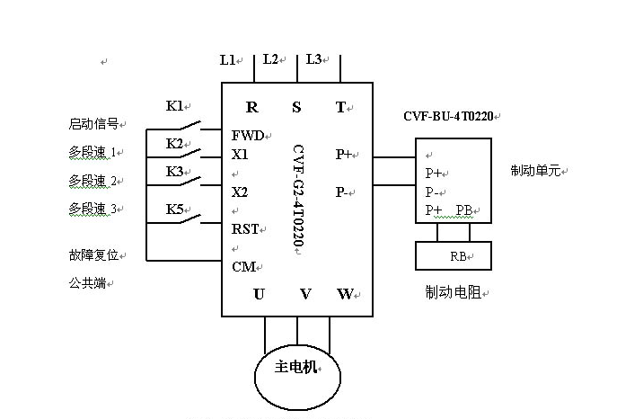 頻率設置由AI2端子模擬電壓,輸入范圍:DC 0~10V相關設定見功能碼F6. 06~F6.11定義。